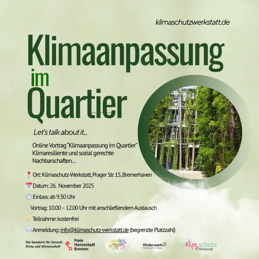ORT: Klimaschutz-Werkstatt, Prager Str. 15, 27568 Bremerhaven
