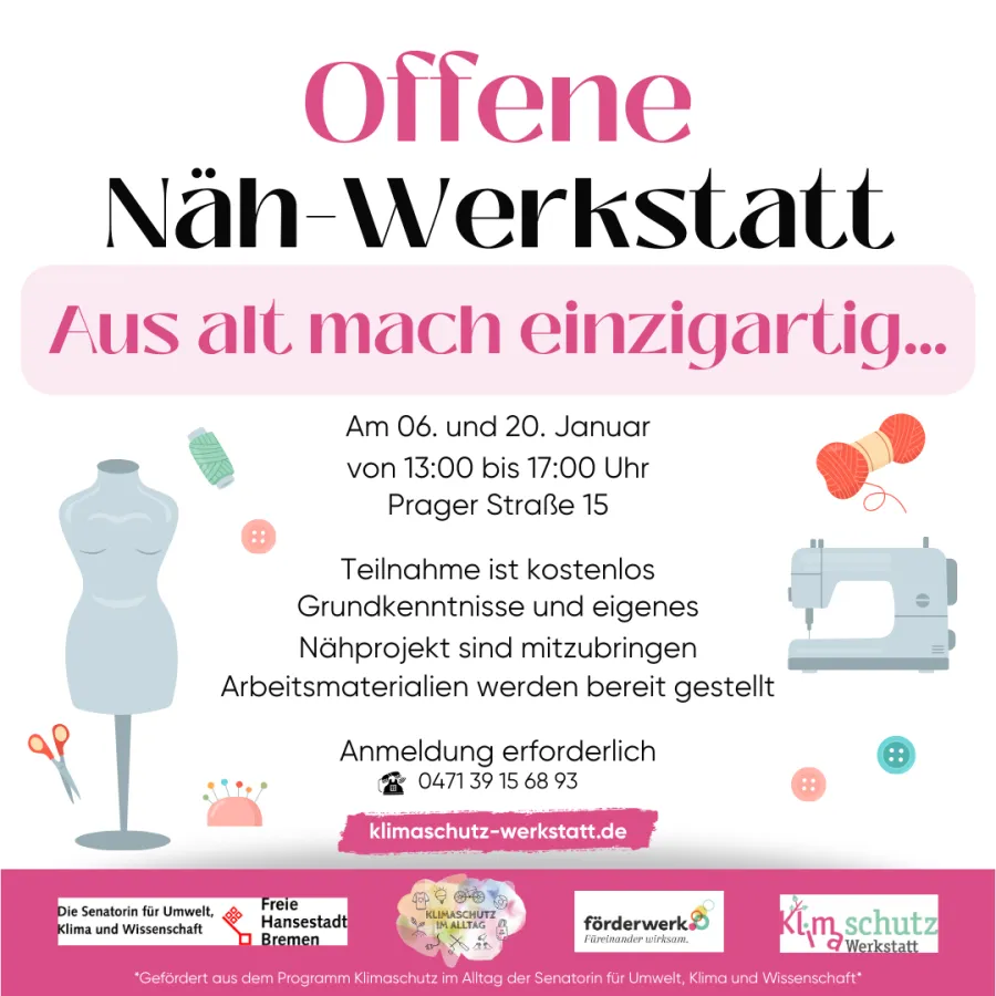 Offene Näh-Werkstatt am 06. und 20. Januar 2026.